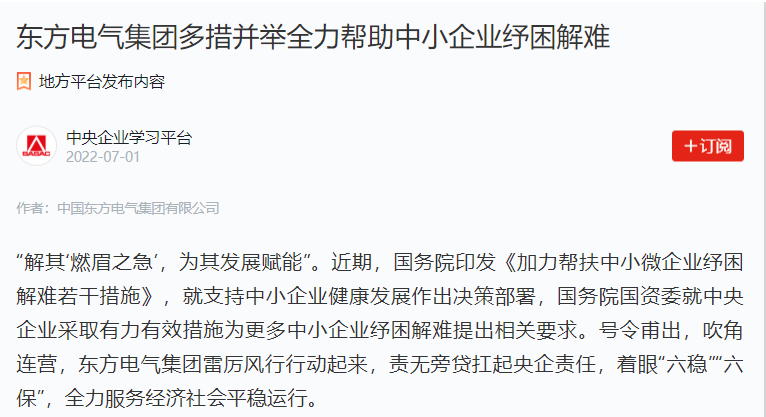 “解其‘燃眉之急’,为其生长赋能”。近期,国务院印发《加力帮扶中小微企业纾困解难若干步伐》,就支持中小企业康健生长作出决议安排,国务院国资委就中央企业接纳有力有用步伐为更多中小企业纾困解难提出相关要求。下令甫出,吹角连营,永利集团官网总站集团雷厉盛行行动起来,责无旁贷扛起央企责任,着眼“六稳”“六保”,全力服务经济社会平稳运行。