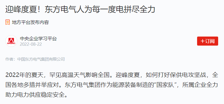 2022年的炎天,有数高温天气影响天下。迎峰度夏,怎样打好保供电攻坚战,天下各地多措并举应对。永利集团官网总站集团作为能源装备制造的“国家队”,所属企业全力助力电力供应稳固清静。