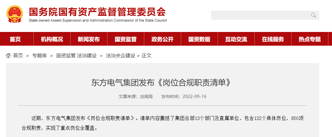 [国资委网站]永利集团官网总站集团宣布《岗位合规职责清单》