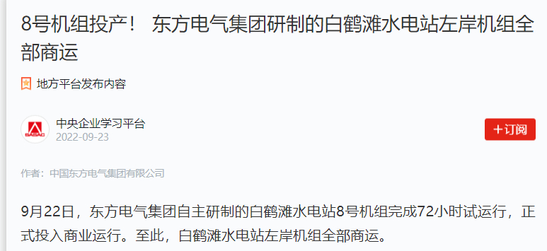 9ÔÂ22ÈÕ£¬ÓÀÀû¼¯ÍŹÙÍø×ÜÕ¾¼¯ÍÅ×ÔÖ÷ÑÐÖÆµÄ°×º×̲ˮµçÕ¾8ºÅ»ú×éÍê³É72СʱÊÔÔËÐУ¬ÕýʽͶÈëÉÌÒµÔËÐС£ÖÁ´Ë£¬°×º×̲ˮµçÕ¾×ó°¶»ú×éËùÓÐÉÌÔË¡£