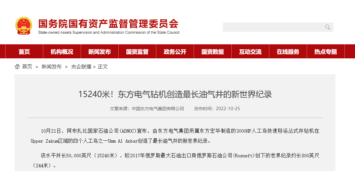 10ÔÂ21ÈÕ£¬°¢²¼Ôú±È¹ú¼ÒʯÓ͹«Ë¾(ADNOC)Ðû²¼£¬ÓÉÓÀÀû¼¯ÍŹÙÍø×ÜÕ¾¼¯ÍÅËùÊô¶«·½ºê»ªÖÆÔìµÄ3000HPÈ˹¤µº¿ìËÙÒÆÔË´Ôʽ¾®×ê»úÔÚUpper ZakumÇøÓòµÄËÄСÎÒ˽¼Ò¹¤µºÖ®Ò»Umm Al Anbar´´Á¢ÁË×ÓÍÆø¾®µÄÐÂÌìϼͼ¡£