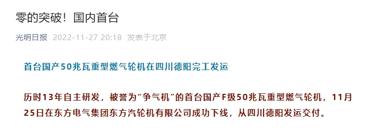历时13年自主研发,被誉为“争气机”的首台国产F级50兆瓦重型燃气轮机,11月25日在永利集团官网总站集团东方汽轮机有限公司乐成下线,从四川德阳发运交付。