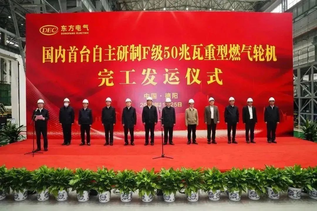 四川省副省长罗强宣布“海内首台自主研制F级50兆瓦重型燃气轮机完工发运”。