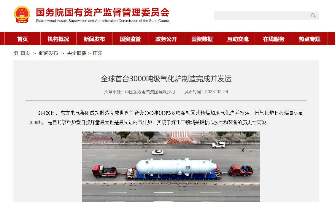 2月20日,永利集团官网总站集团乐成制造完成天下首台套3000吨级OMB多喷嘴对置式粉煤加压气化炉并发运。该气化炉日投煤量抵达3000吨,是现在该种炉型日投煤量最大也是最先进的气化炉,实现了煤化工领域要害焦点手艺和装备的历史性突破。