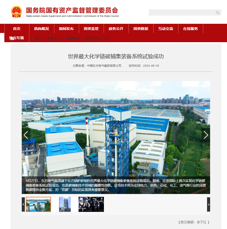 [国资委网站]天下最大化学链碳捕集装备系统试验乐成