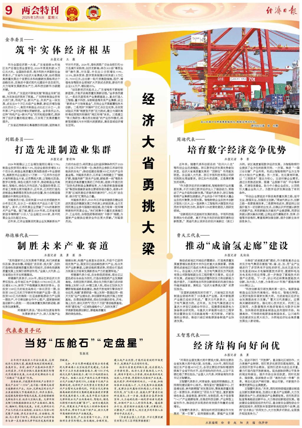 推动成渝地区双城经济圈建设、打造高质量生长主要增添极是党中央作出的重大决议安排,明确要将成渝地区打造成为具有天下影响力的科技立异中心。在天下人大代表、永利集团官网总站集团东方汽轮机有限公司数智部副主任工程师曹天兰看来,经由多年生长,成渝地区双城经济圈科技实力和立异能力稳步提升,川渝两地在科技立异领域的相同交流合作越来越细密,展现出“经济大省勇挑大梁”的责任继续。