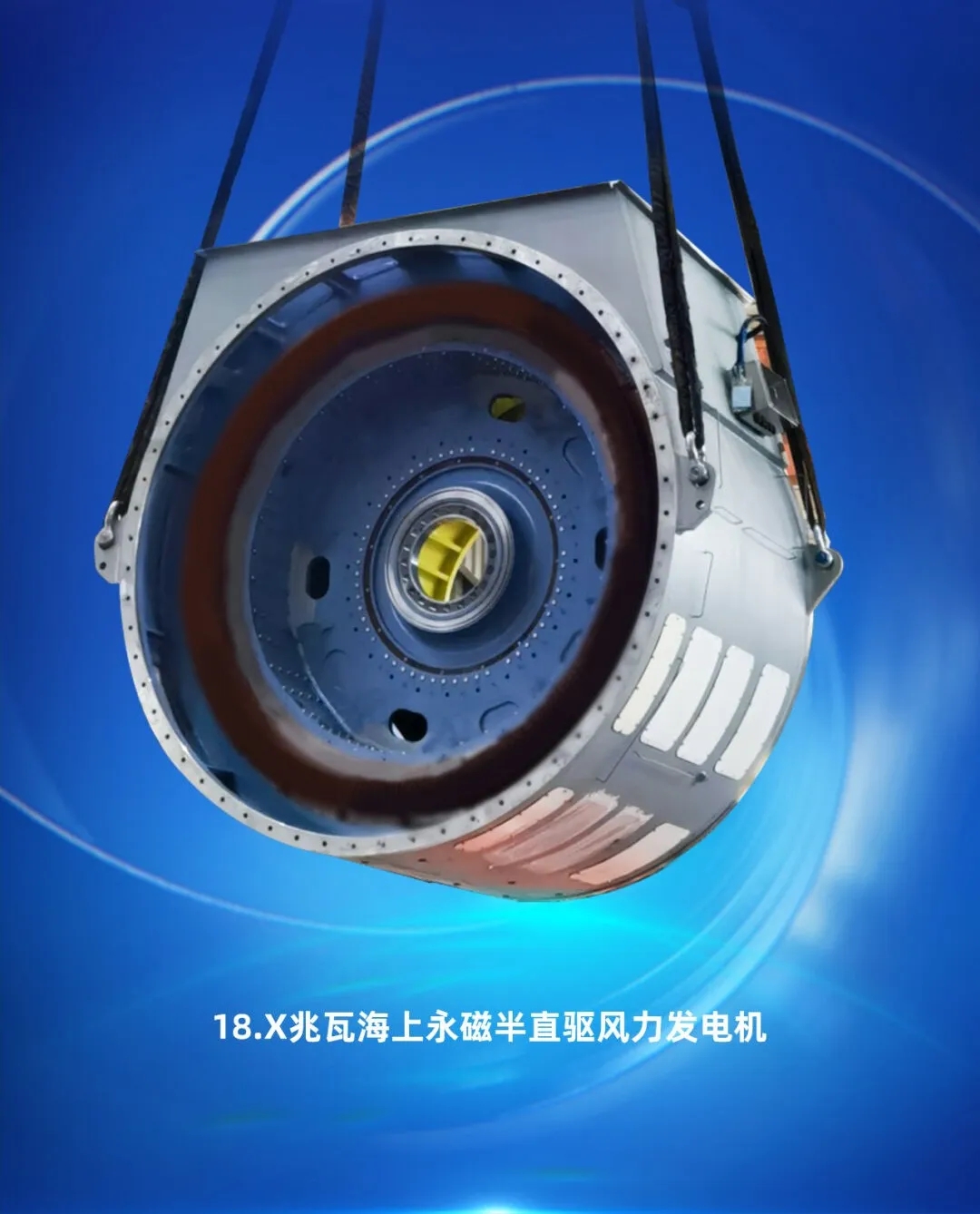 拥有完全自主知识产权的全新一代18兆瓦海上直驱风电机组,要害部件叶片、发电机、变流器、变压器等完全实现了国产化,推动了整个风电工业链的协同生长和手艺前进,该机组获评2023年度央企十大国之重器。