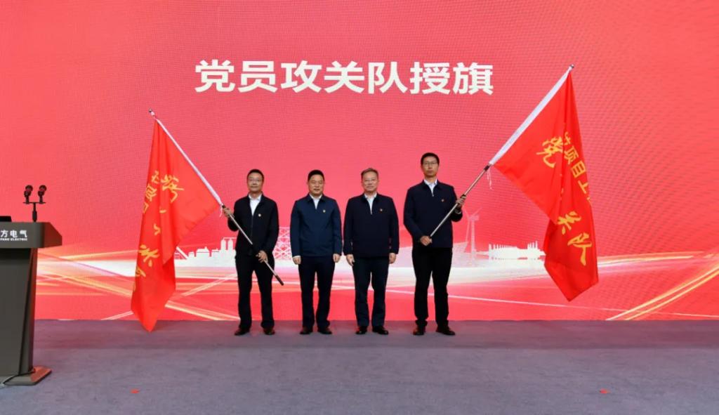 仪式上,东方电机党委、大唐西藏公司党委举行“链上党建”共建活动,宣布了“链上党建”共建计划,双方签署共建协议。王军、沈鹏为大唐扎拉水电站项目工程建设党员攻关队、机组研制党员攻关队授旗。