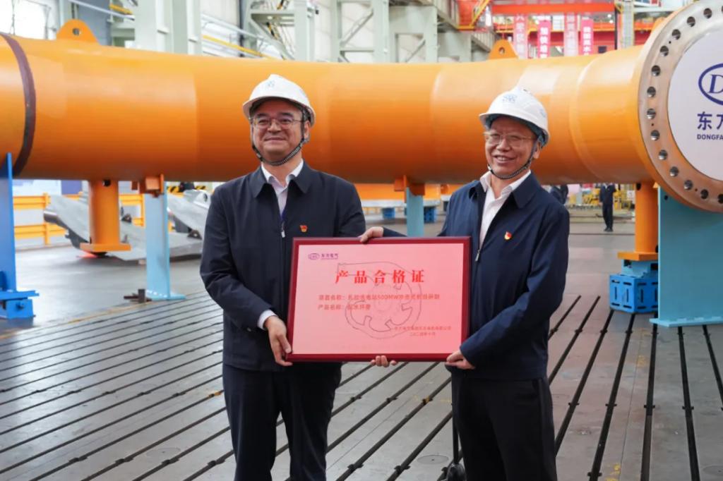 双方代表移交了大唐扎拉水电站国产化首台500兆瓦攻击式机组配水环管及格证。