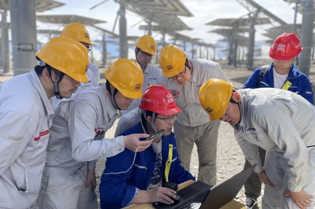到哈密光热项目时,来自差别专业岗位的16名青年领旗出征,扎根离乡数千里的哈密光热项目现场。这一去,又三年。项目初期,摆在团队眼前的第一个“拦路虎”是镜场调试。要实现每一个镜片都能稳固“追随”太阳,从单个镜片到一组镜片再到全场镜片,需要一直优化计划,每次调试用时都在十个小时以上。时值酷暑,室外温度高达50摄氏度,团队成员的衣服湿了又干,干了又湿,结出了一层厚厚的盐霜。