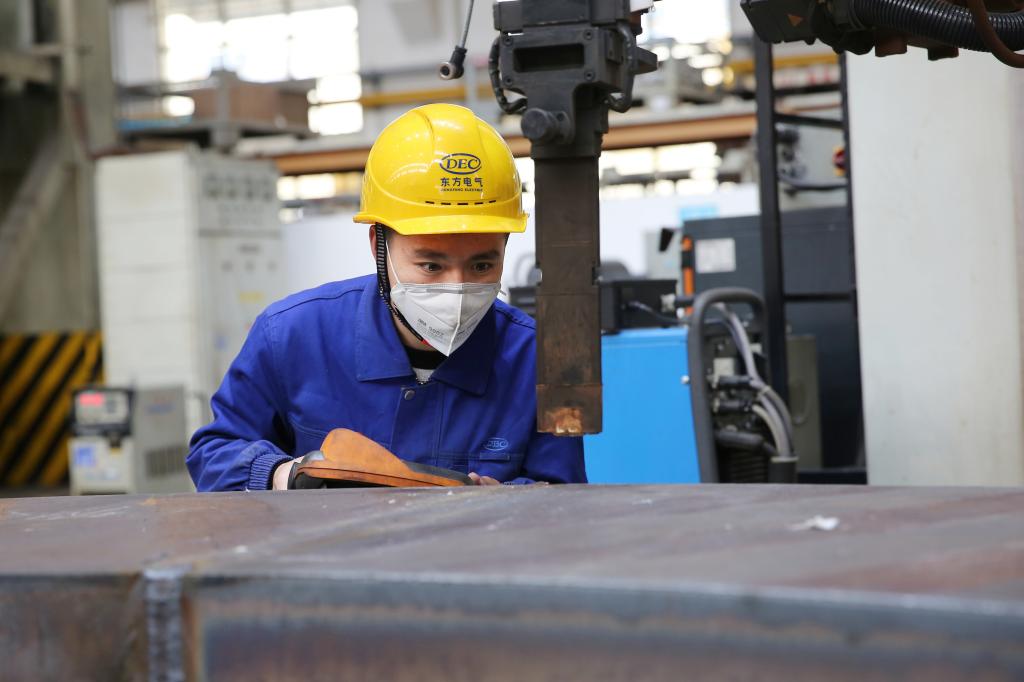 秦建所在班组从事东方电机大型水火电机组焦点部件的焊接事情,干好自己事情的同时,他还要随时解决“疑难杂症”。