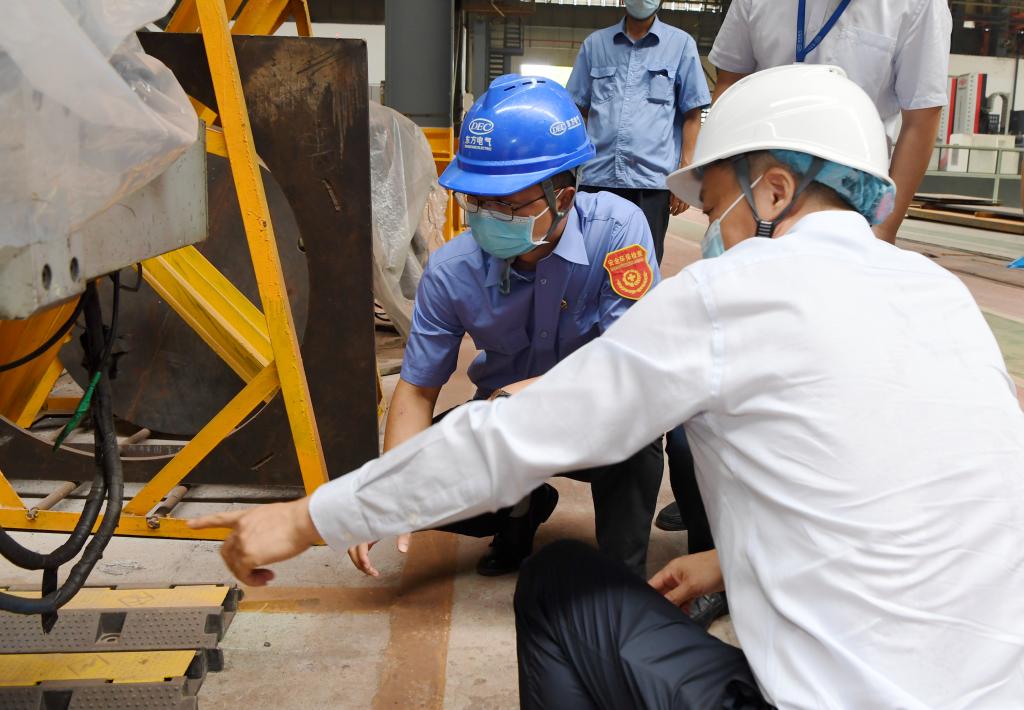 在建设中的东方汽轮机新型二氧化碳储能验证系统项目和叶片加工黑灯产线,东方锅炉氢工业科技树模园和化学链燃烧兆瓦级中试试验树模装置项目现场,俞培根强调要强化现场施工管理,在确保清静的条件下有序推进项目施工进度,坚决守住清静底线、筑牢清静防地,他还谢谢相关手艺职员、建设职员的辛勤支付,勉励他们勇于拼搏、争创一流,为集团公司“绿色智造”转型作出新的更大孝顺。在东方电机清静体验基地,俞培根现场寓目了体验式脚手架登高培训、VR模拟清静体验等演示,强调要常态化开展清静教育培训以及演练活动,进一步增强职工清静意识与清静手艺。检查时代,俞培根还对各企业抓好疫情防控、防控质量危害等提出详细要求。