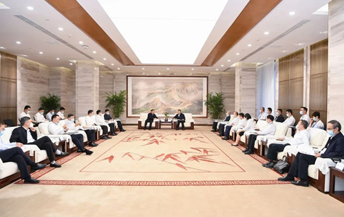 本网讯 9月27日 ,国家电网有限公司党组书记、董事长辛保安率队来访 ,受到集团公司党组书记、董事长俞培根 ,总司理、党组副书记徐鹏的热情接待。双方就携手服务国家战略 ,推动能源清洁低碳转型 ,施展包管能源清静的“国家队”和“顶梁柱”作用 ,助力“双碳”目的实现举行了深入友好交流。国家电网党组副书记庞骁刚 ,集团公司纪检监察组组长、党组成员袁明刚 ,党组成员、副总司理李忠军加入谈判。