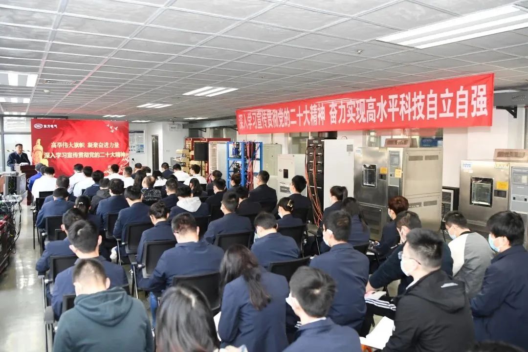 为指导全集团宽大干部职工切实把头脑和行动统一到党的二十大精神上来,凭证永利集团官网总站集团党组统一安排,11月22日,集团公司“高举伟大旌旗 凝聚奋进力量”党的二十大精神宣讲队首场宣讲报告会在东方研究院新能源电池测试实验室举行,用“行走的课堂”讲述“我们身边”拼搏奋进争先的鲜活故事,激励科研事情者以实干抢抓立异先机,为加速实现高水平科技自主自强孝顺“东方”力量。