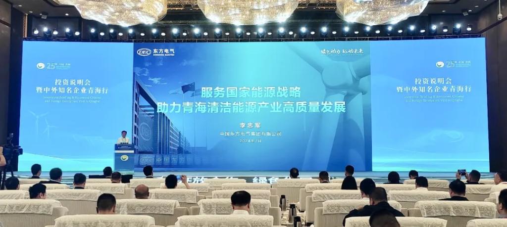 李忠军作为央企签约代表在青洽会投资说明会上致辞。
