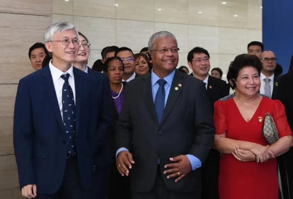 本网讯 9月6日,塞舌尔总统拉姆卡拉旺及夫人一行到永利集团官网总站集团旅行考察,受到集团公司总司理、党组副书记张彦军的热情接待。中国驻塞舌尔大使林楠陪同考察。股份公司副总裁李建华加入接待。
